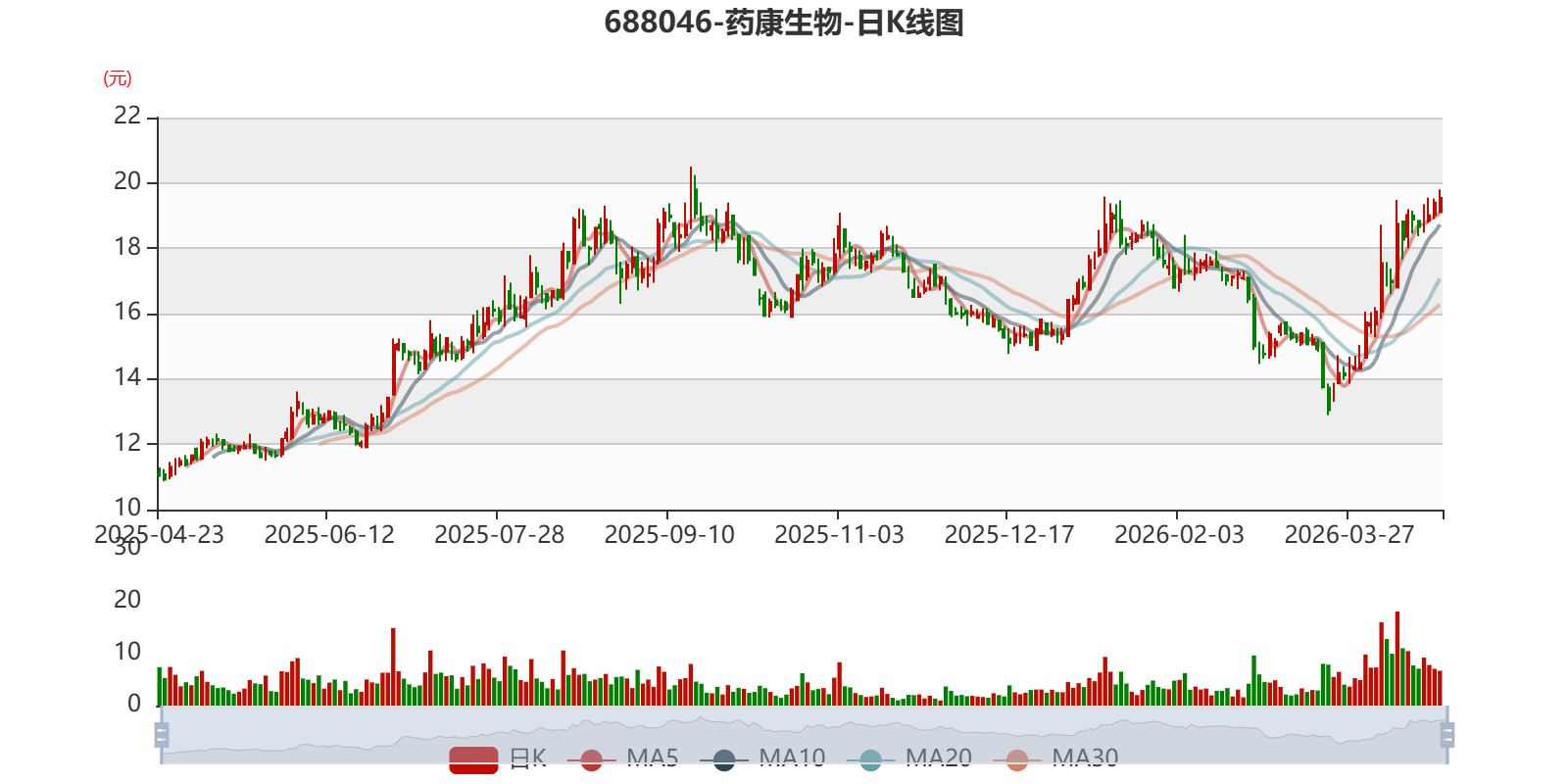 以4月22日收盘价计算,药康生物目前市盈率(TTM)约为50.15倍,市净率(LF)约3.52倍,市销率(TTM)约9.65倍。