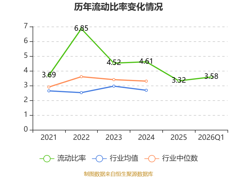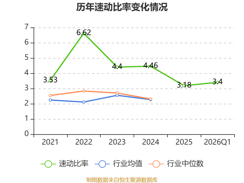 2026年第一季度,公司流动比率为3.58,速动比率为3.4。
