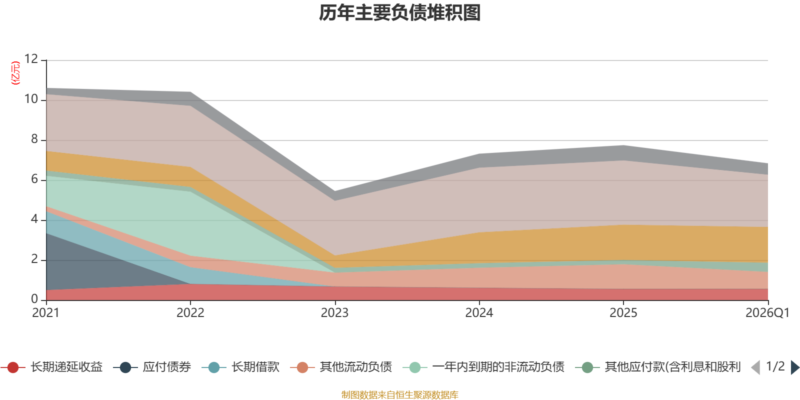 负债重大变化方面,截至2026年一季度末,公司应付票据及应付账款较上年末减少18.63%,占公司总资产比重下降1.8个百分点;其他流动负债较上年末减少31.35%,占公司总资产比重下降1.24个百分点;其他应付款(含利息和股利)较上年末增加120.25%,占公司总资产比重上升0.89个百分点;应交税费较上年末减少54.63%,占公司总资产比重下降0.44个百分点。