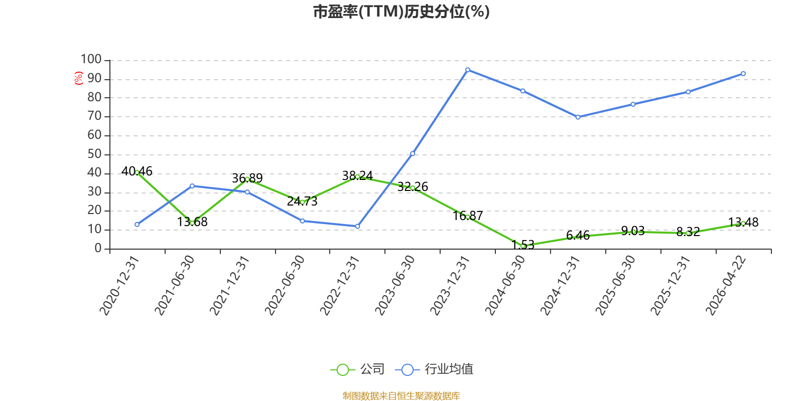 市盈率、市净率为负时,不显示当期分位数,会导致折线图中断。