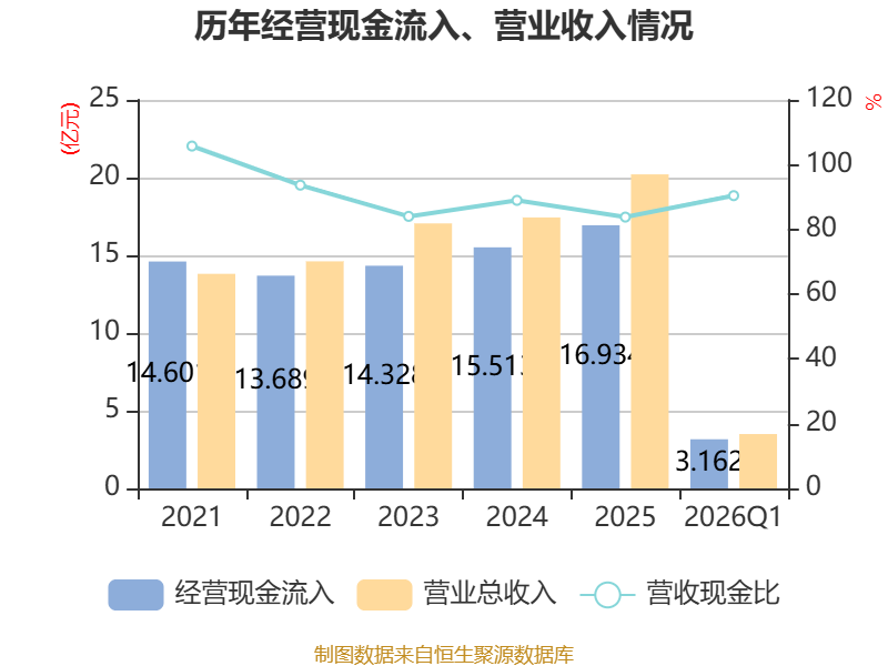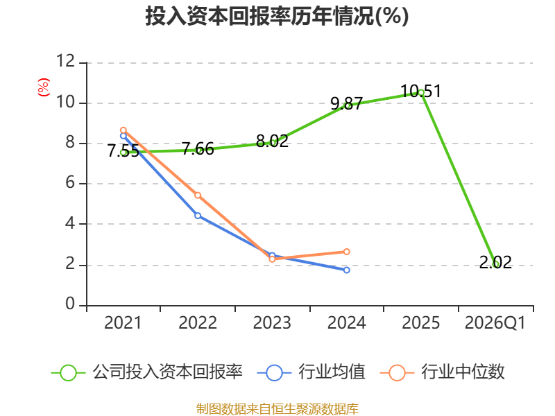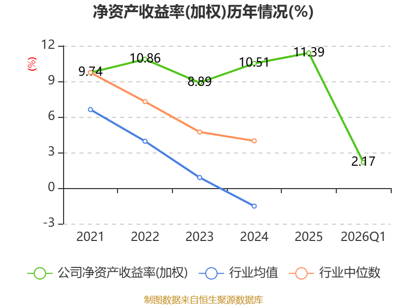 盈利能力方面, 2026年一季度公司加权平均净资产收益率为2.17%,同比下降0.17个百分点。公司2026年第一季度投入资本回报率为2.02%,较上年同期下降0.19个百分点。