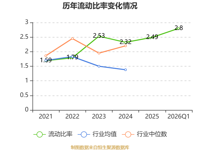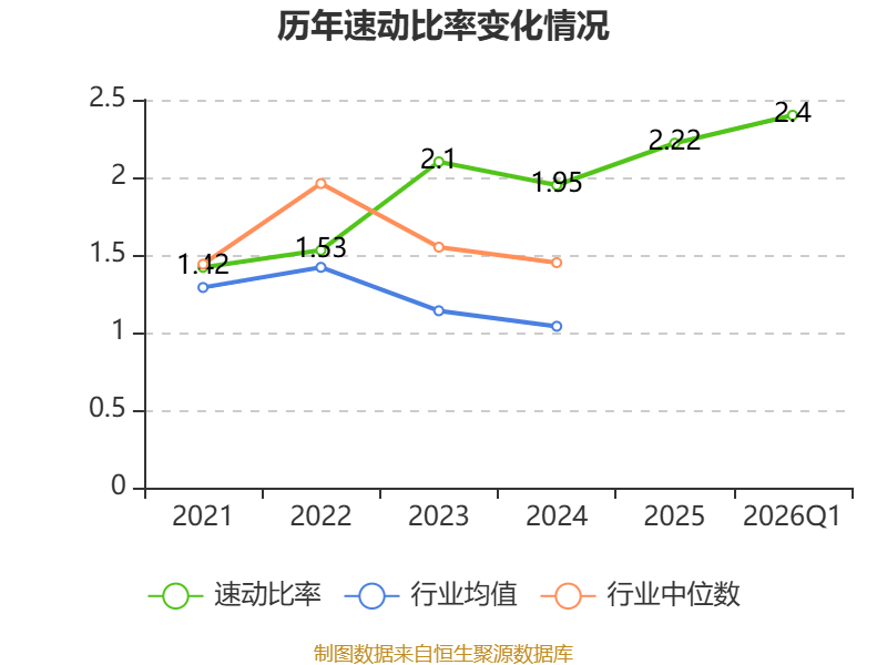2026年第一季度,公司流动比率为2.8,速动比率为2.4。
