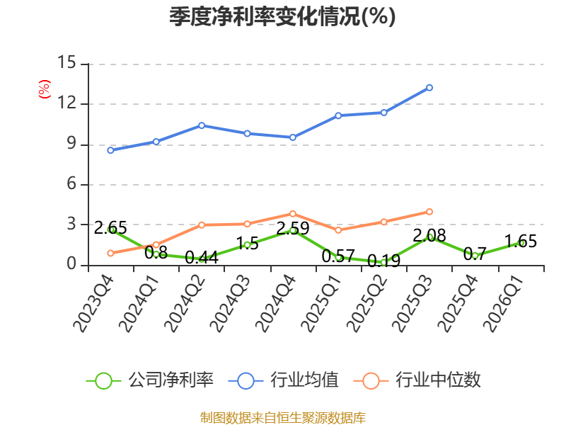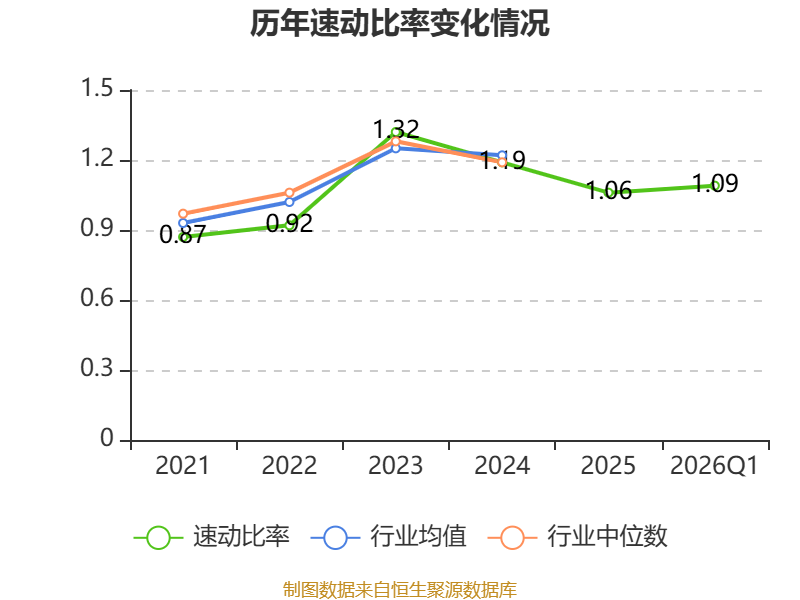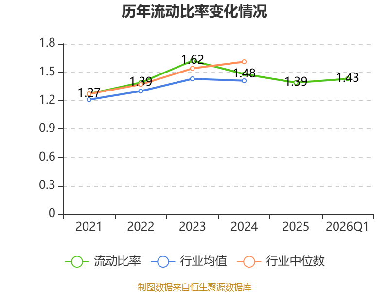 2026年第一季度,公司流动比率为1.43,速动比率为1.09。