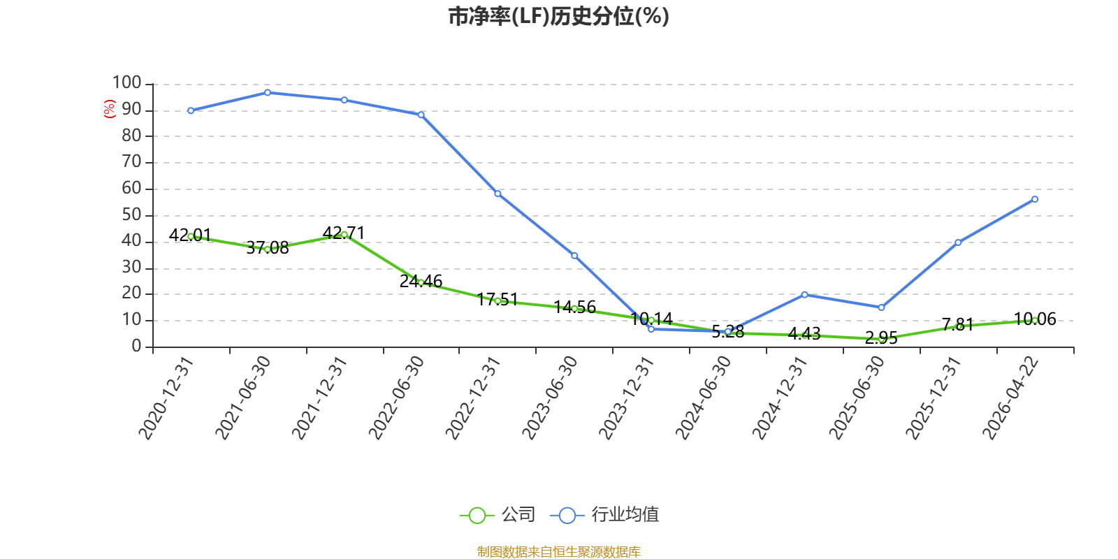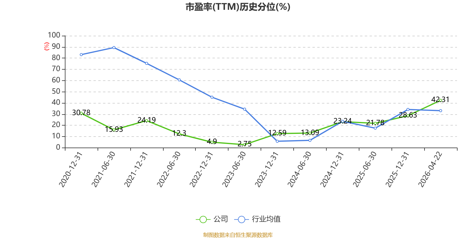 市盈率、市净率为负时,不显示当期分位数,会导致折线图中断。