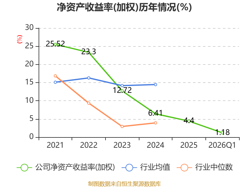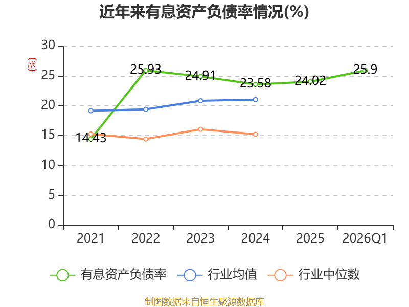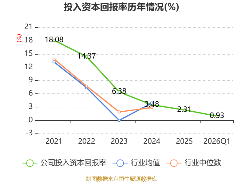 盈利能力方面, 2026年一季度公司加权平均净资产收益率为1.18%,同比上升0.44个百分点。公司2026年第一季度投入资本回报率为0.93%,较上年同期上升0.58个百分点。
