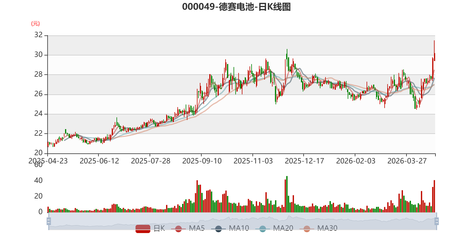 中证智能财讯德赛电池(000049)4月23日披露2026年第一季度报告。公司实现营业总收入50.08亿元,同比增长14.63%;归母净利润7991.65万元,同比增长64.23%;扣非净利润5541.72万元,同比增长74.27%;经营活动产生的现金流量净额为4.97亿元,同比下降15.92%;报告期内,德赛电池基本每股收益为0.2078元,加权平均净资产收益率为1.18%。
