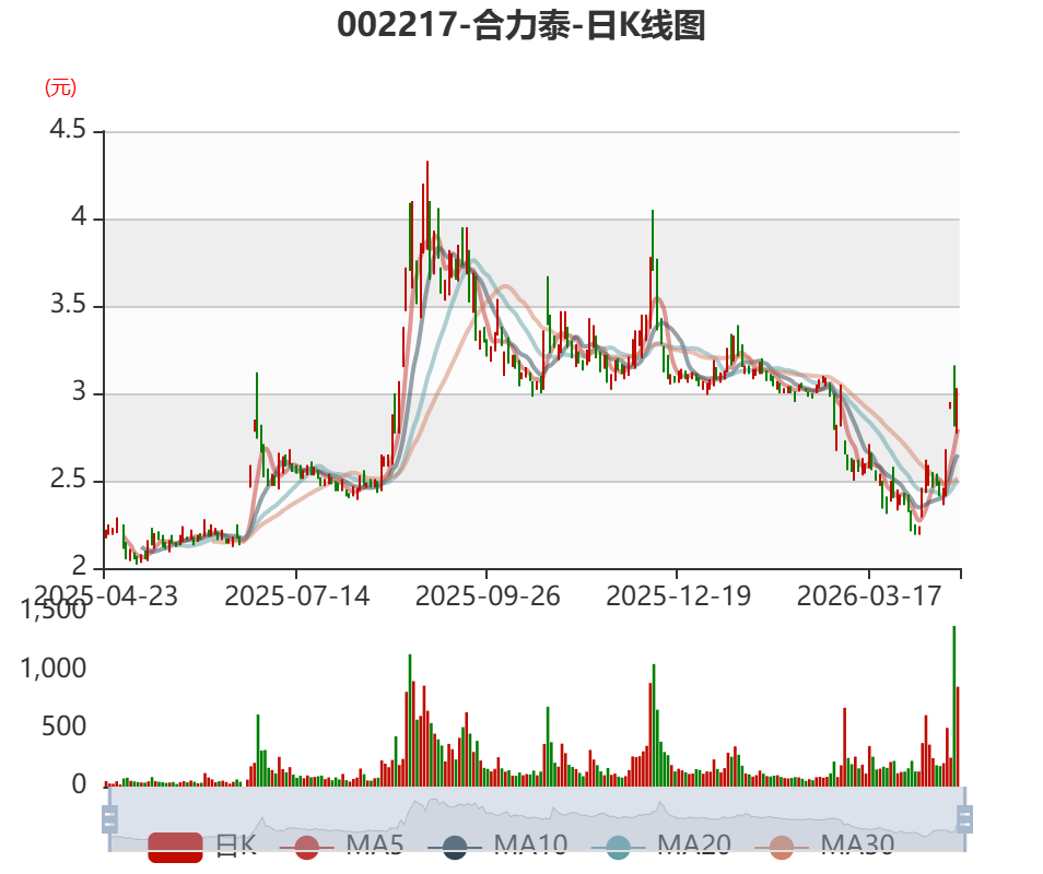 中证智能财讯合力泰(002217)4月23日披露2026年第一季度报告。公司实现营业总收入3.96亿元,同比增长8.35%;归母净利润82.76万元,同比下降79.74%;扣非净利润亏损23.74万元,上年同期盈利40.93万元;经营活动产生的现金流量净额为-467.86万元,上年同期为-1.95亿元;报告期内,合力泰基本每股收益为0.0001元,加权平均净资产收益率为0.04%。