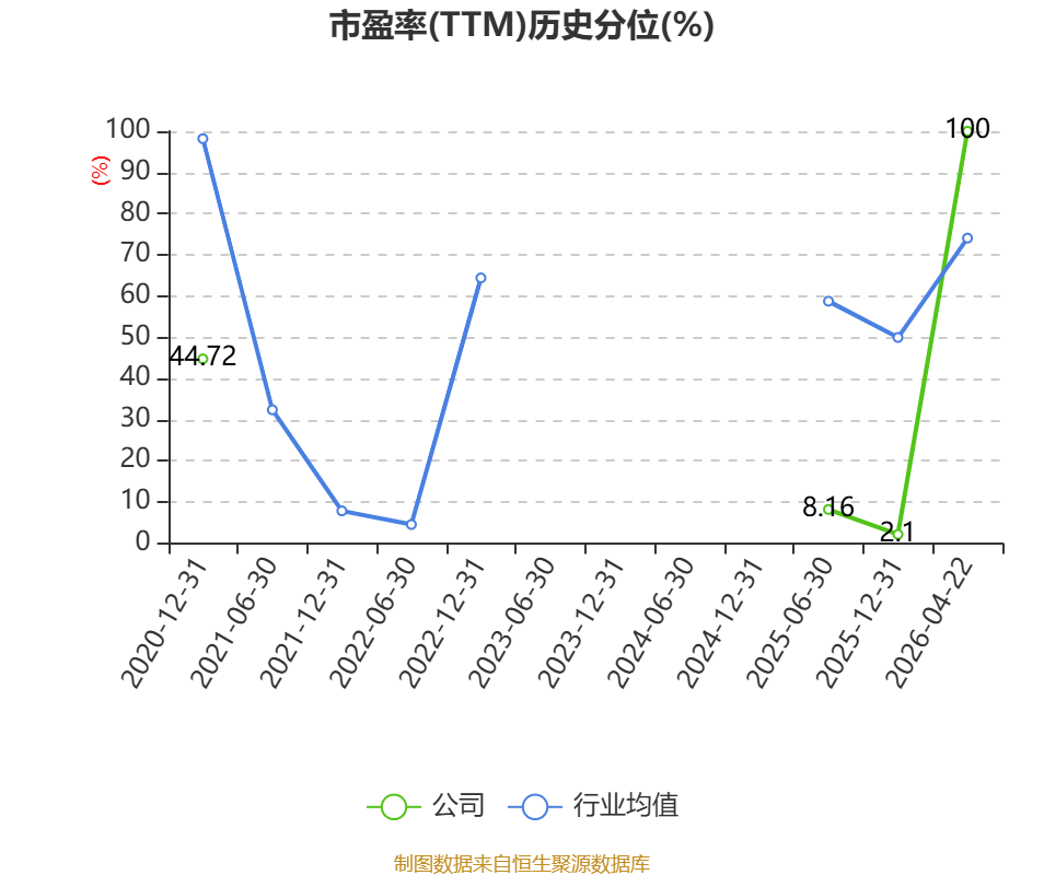 市盈率、市净率为负时,不显示当期分位数,会导致折线图中断。