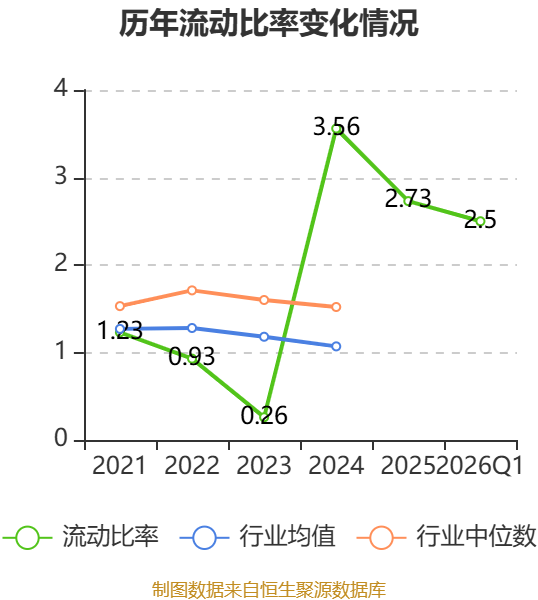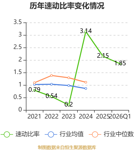 2026年第一季度,公司流动比率为2.5,速动比率为1.85。