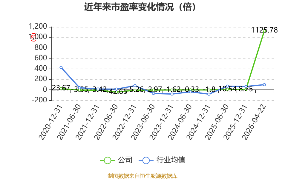 以4月22日收盘价计算,合力泰目前市盈率(TTM)约为1125.78倍,市净率(LF)约11.71倍,市销率(TTM)约12.77倍。