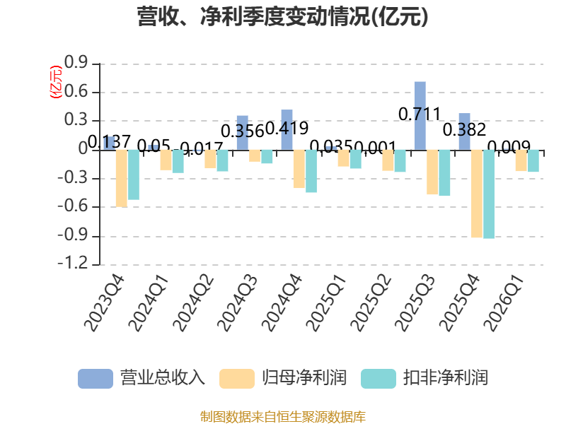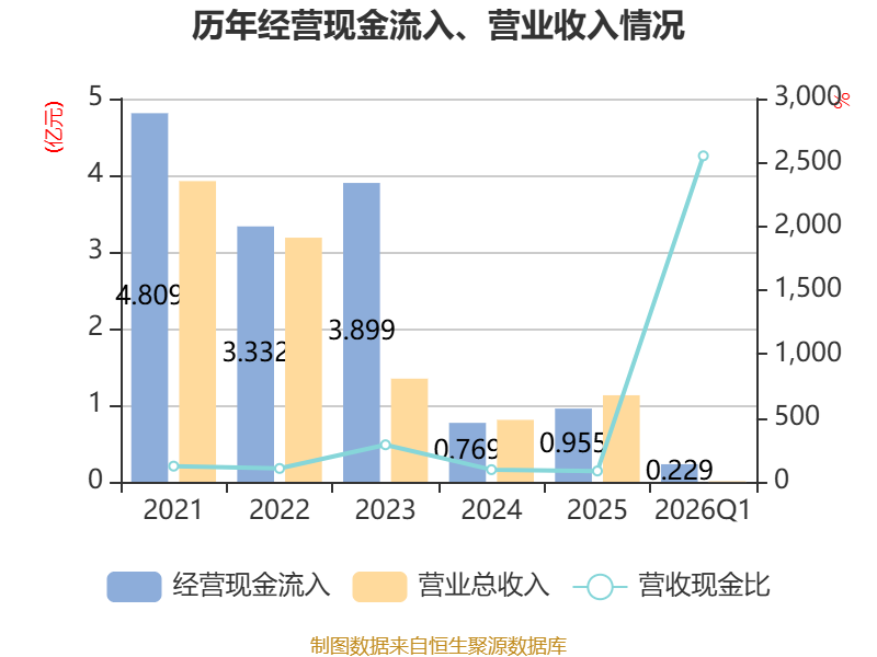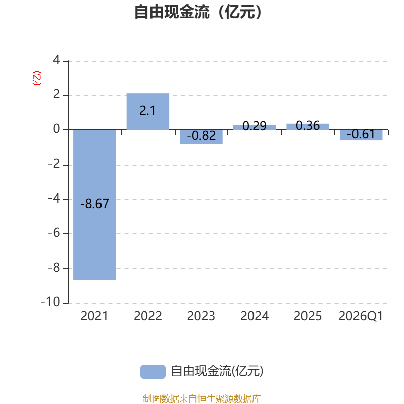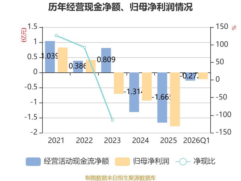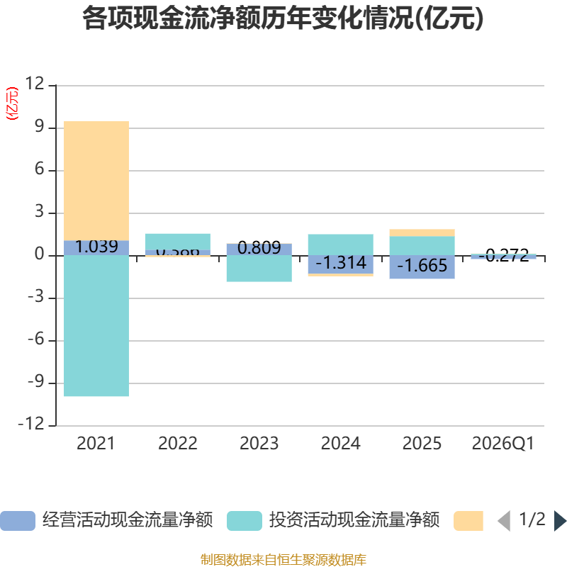 截至2026年一季度末,公司经营活动现金流净额为-2718.17万元,同比增加1487.83万元;筹资活动现金流净额142.35万元,同比增加71.41万元;投资活动现金流净额931.76万元,上年同期为7010.03万元。