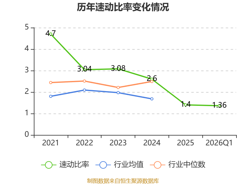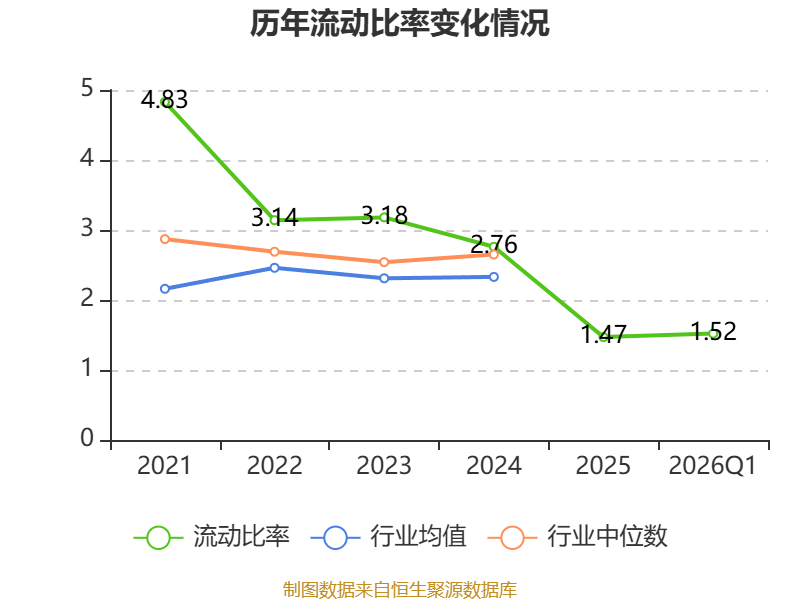 2026年第一季度,公司流动比率为1.52,速动比率为1.36。