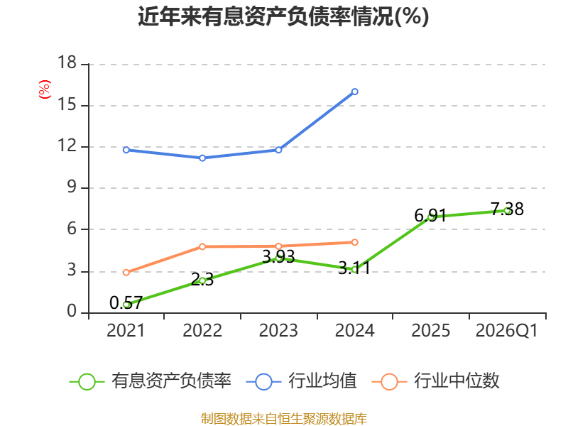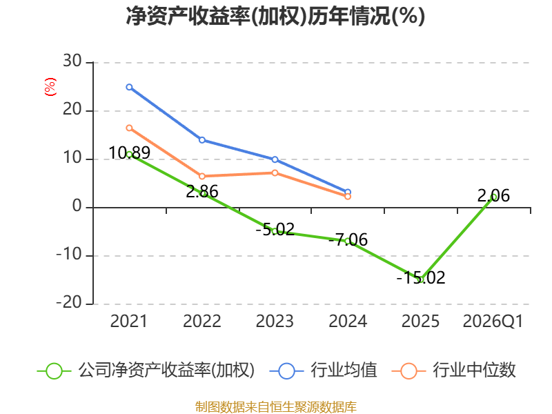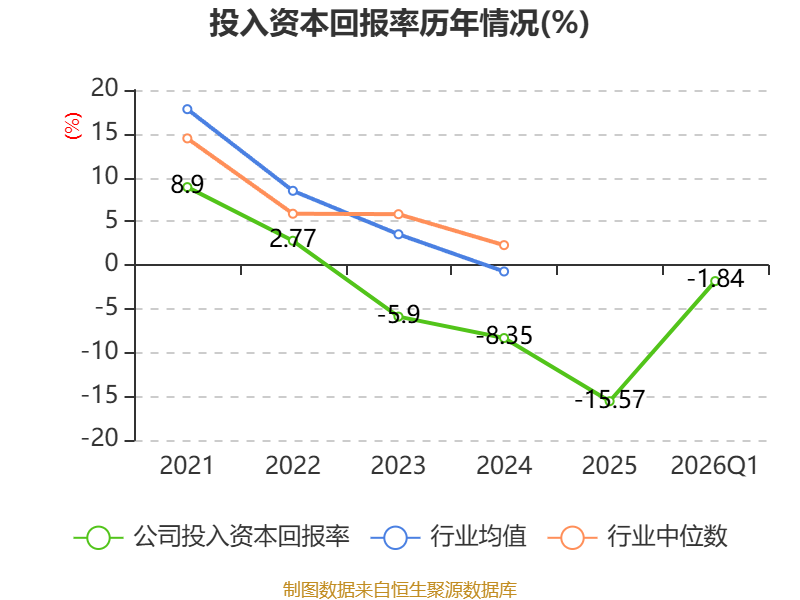 盈利能力方面, 2026年一季度公司加权平均净资产收益率为2.06%,同比上升0.67个百分点。公司2026年第一季度投入资本回报率为-1.84%,较上年同期下降0.17个百分点。
