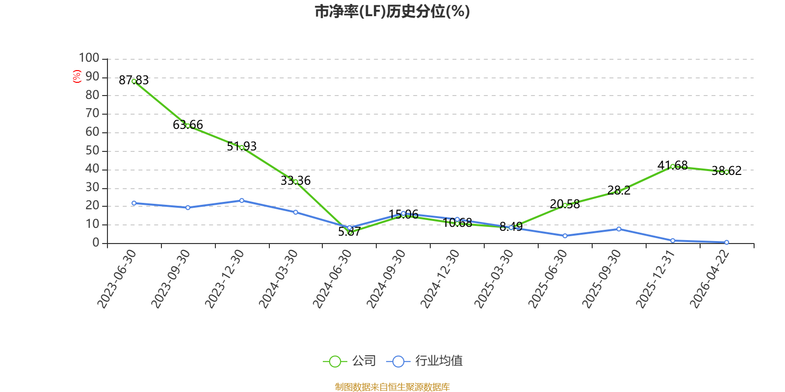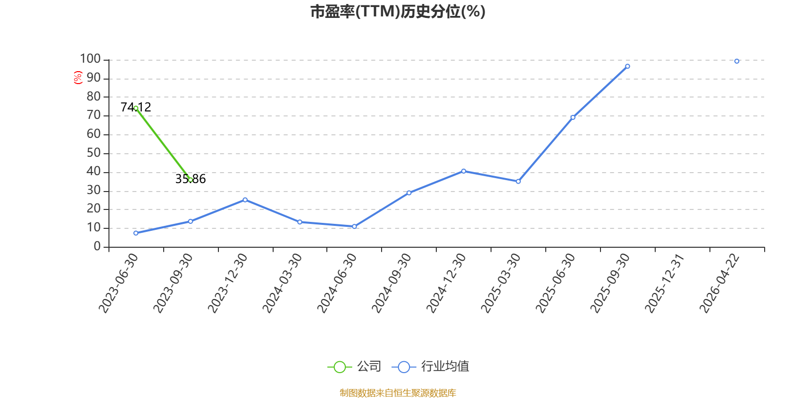 市盈率、市净率为负时,不显示当期分位数,会导致折线图中断。