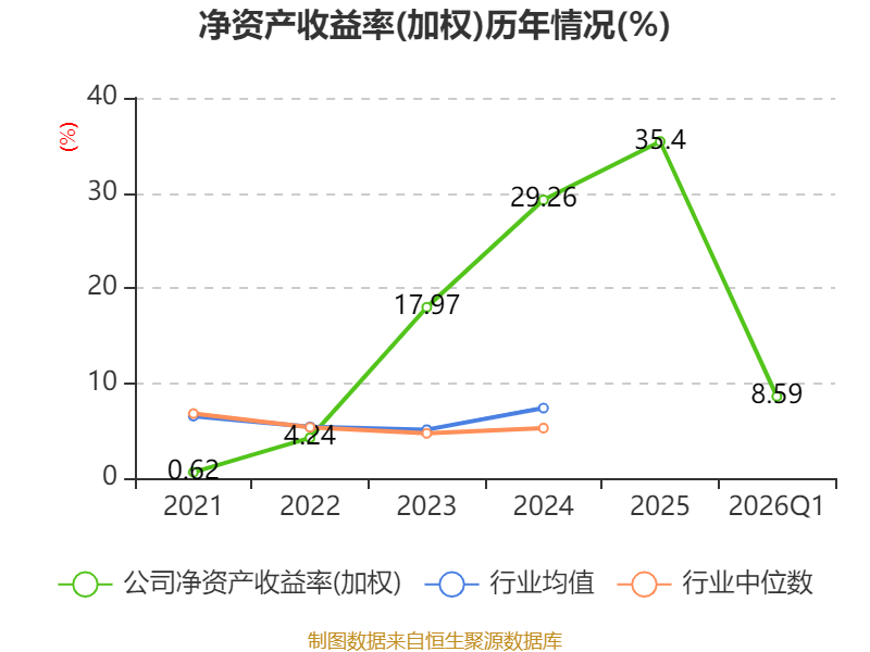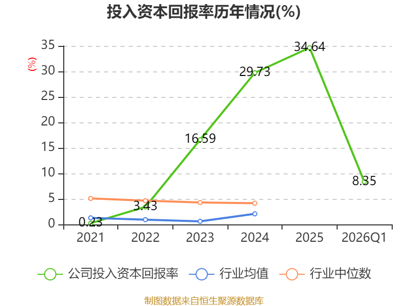 盈利能力方面, 2026年一季度公司加权平均净资产收益率为8.59%,同比上升1.16个百分点。公司2026年第一季度投入资本回报率为8.35%,较上年同期上升1.01个百分点。