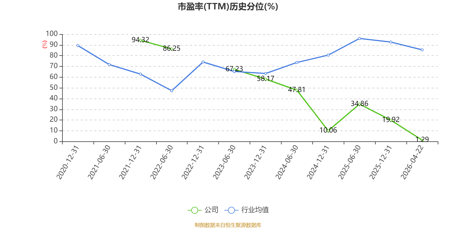 市盈率、市净率为负时,不显示当期分位数,会导致折线图中断。