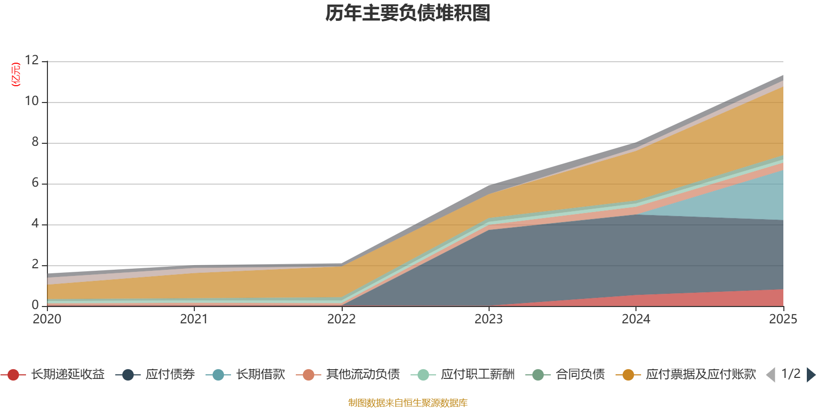 负债重大变化方面,截至2025年末,公司长期借款占公司总资产的9.06%,上年末为0;应付债券较上年末减少13.88%,占公司总资产比重下降4.19个百分点;应付票据及应付账款较上年末增加38.29%,占公司总资产比重上升2.11个百分点;长期递延收益较上年末增加51.76%,占公司总资产比重上升0.74个百分点。
