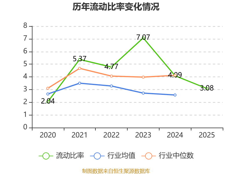2025年,公司流动比率为3.08,速动比率为2.07。