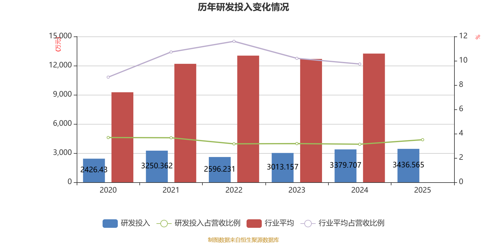 2025年全年,公司研发投入金额为3436.56万元,同比增长1.68%;研发投入占营业收入比例为3.5%,相比上年同期上升0.37个百分点。此外,公司全年研发投入资本化率为0%。