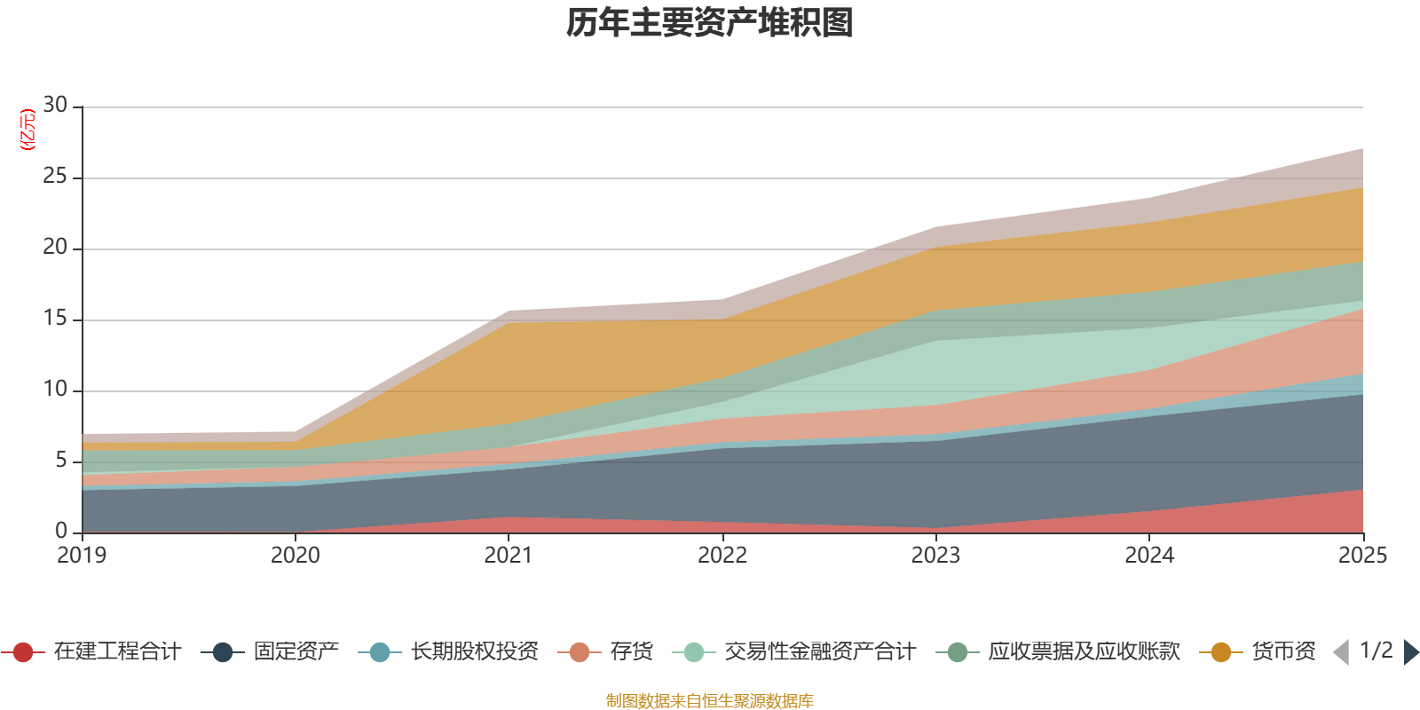 资产重大变化方面,截至2025年末,公司交易性金融资产合计较上年末减少80.94%,占公司总资产比重下降10.47个百分点;存货较上年末增加67.78%,占公司总资产比重上升5.34个百分点;在建工程合计较上年末增加100.77%,占公司总资产比重上升4.77个百分点;固定资产较上年末增加0.56%,占公司总资产比重下降3.52个百分点。