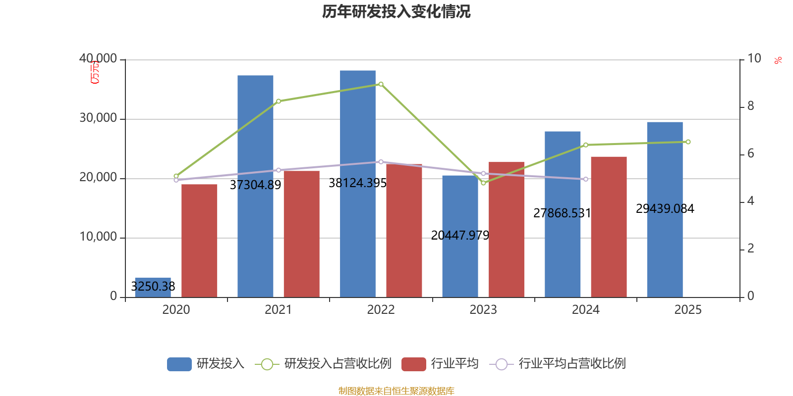 2025年全年,公司研发投入金额为2.94亿元,同比增长5.64%;研发投入占营业收入比例为6.53%,相比上年同期上升0.13个百分点。此外,公司全年研发投入资本化率为0%。