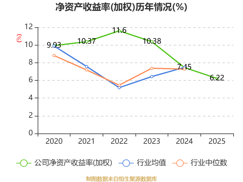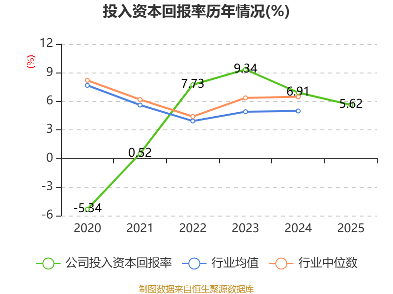 数据显示,2025年公司加权平均净资产收益率为6.22%,较上年同期下降1.23个百分点。公司2025年投入资本回报率为5.62%,较上年同期下降1.29个百分点。
