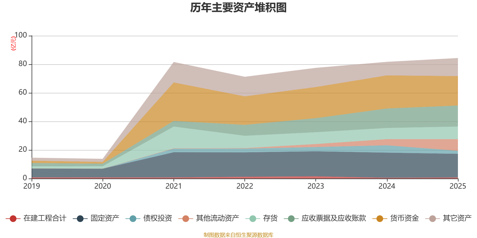 资产重大变化方面,截至2025年末,公司其他流动资产较上年末增加89.74%,占公司总资产比重上升4.41个百分点;货币资金较上年末减少11.29%,占公司总资产比重下降4.01个百分点;债权投资较上年末减少59.08%,占公司总资产比重下降3.83个百分点;一年内到期的非流动资产占公司总资产的3.81%,上年末为0。