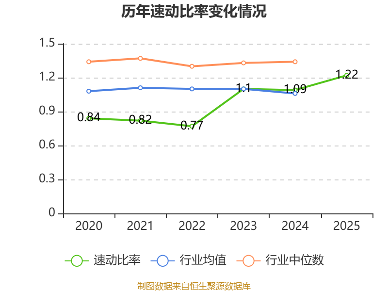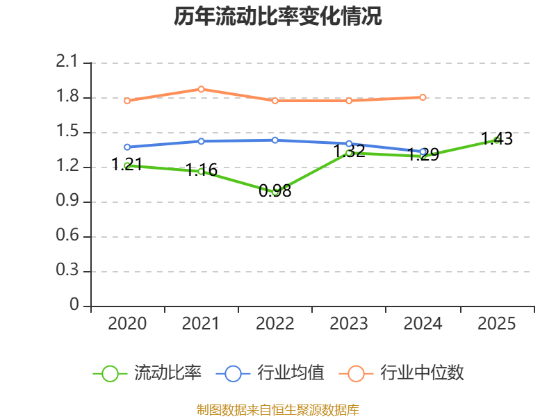 2025年,公司流动比率为1.43,速动比率为1.22。