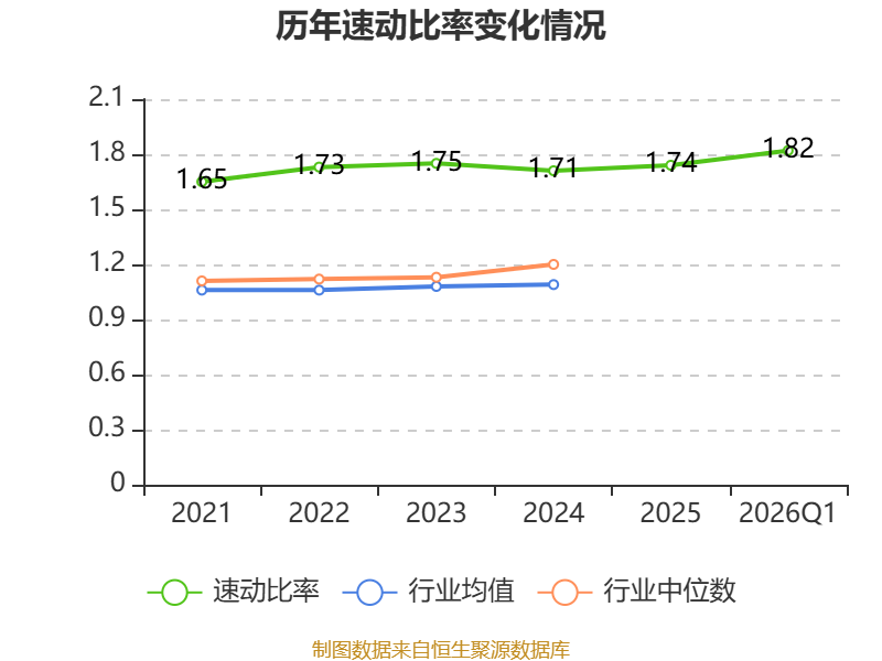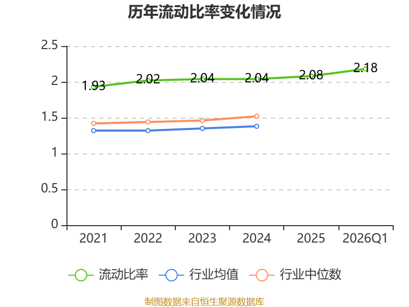2026年第一季度,公司流动比率为2.18,速动比率为1.82。