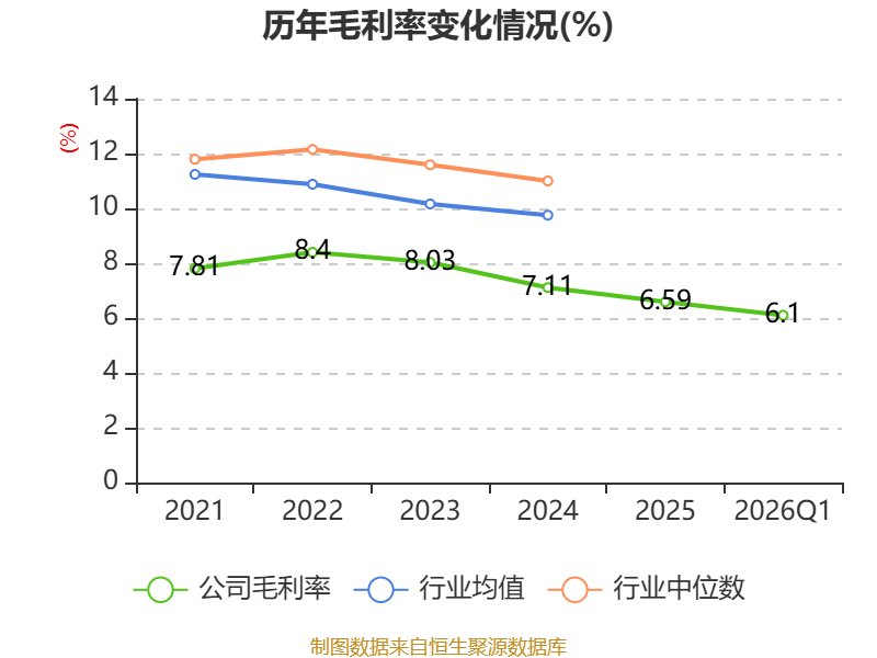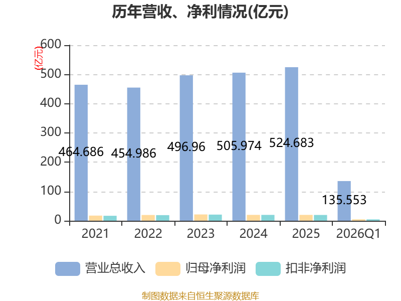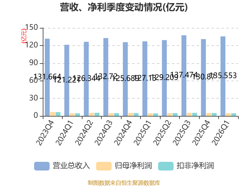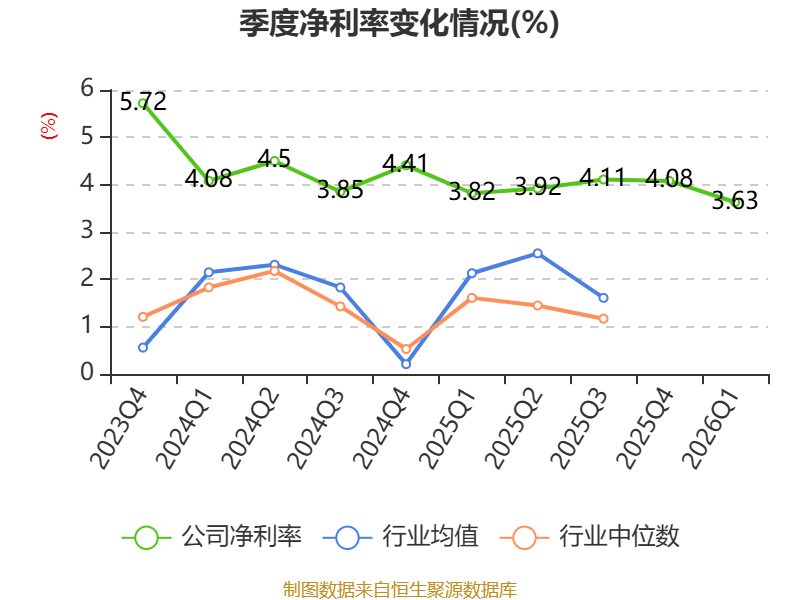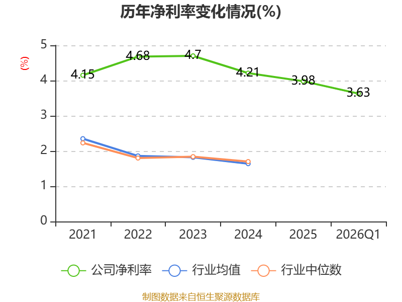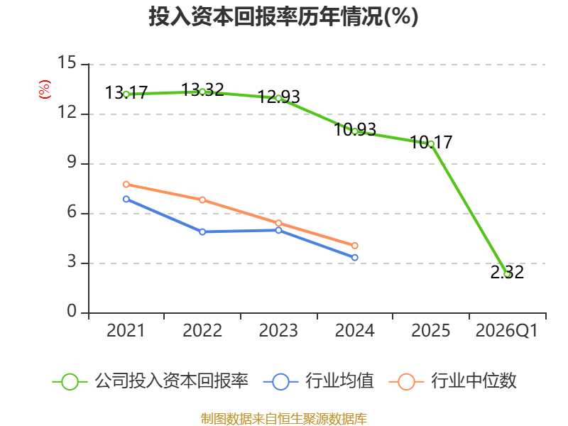 盈利能力方面, 2026年一季度公司加权平均净资产收益率为2.52%,同比下降0.12个百分点。公司2026年第一季度投入资本回报率为2.32%,较上年同期下降0.07个百分点。