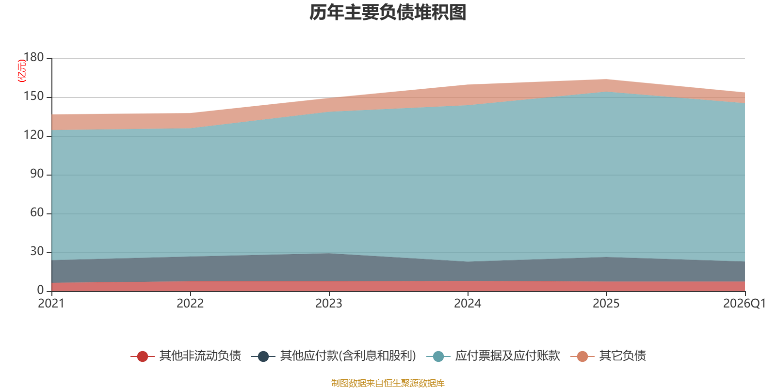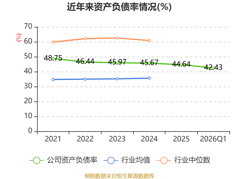 负债重大变化方面,截至2026年一季度末,公司应付票据及应付账款较上年末减少4.23%,占公司总资产比重下降1.01个百分点;其他应付款(含利息和股利)较上年末减少18.43%,占公司总资产比重下降0.89个百分点;应交税费较上年末减少42.43%,占公司总资产比重下降0.19个百分点;应付职工薪酬较上年末减少27.98%,占公司总资产比重下降0.11个百分点。