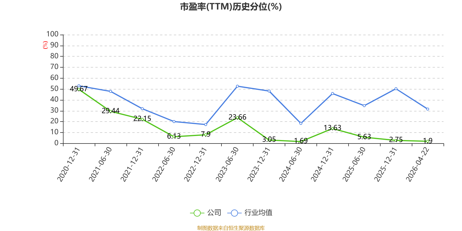 市盈率、市净率为负时,不显示当期分位数,会导致折线图中断。
