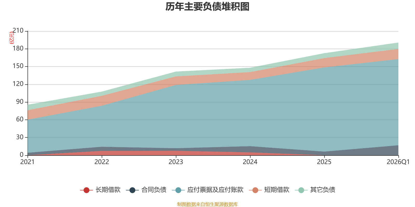 负债重大变化方面,截至2026年一季度末,公司合同负债较上年末增加173.51%,占公司总资产比重上升3.8个百分点;应付票据及应付账款较上年末增加2.37%,占公司总资产比重下降2.68个百分点;租赁负债较上年末增加194.69%,占公司总资产比重上升0.77个百分点;应交税费较上年末增加37.17%,占公司总资产比重上升0.22个百分点。