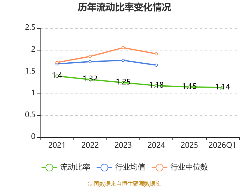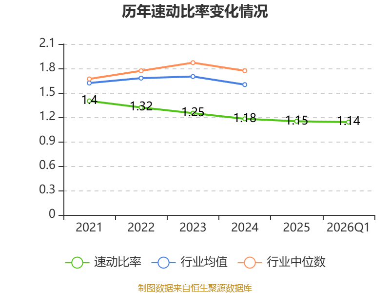 2026年第一季度,公司流动比率为1.14,速动比率为1.14。