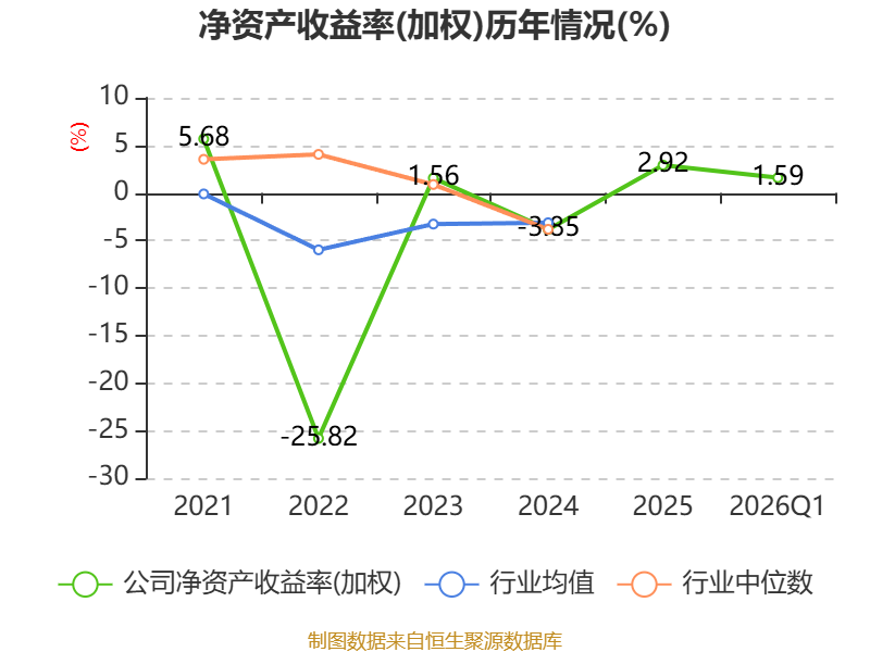 盈利能力方面, 2026年一季度公司加权平均净资产收益率为1.59%,同比上升0.34个百分点。公司2026年第一季度投入资本回报率为1.18%,较上年同期上升0.19个百分点。