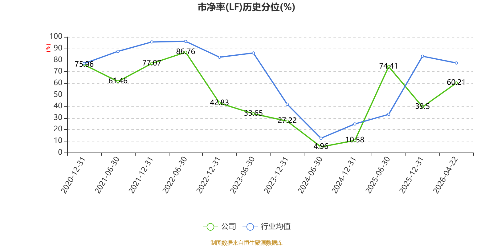 市盈率、市净率为负时,不显示当期分位数,会导致折线图中断。