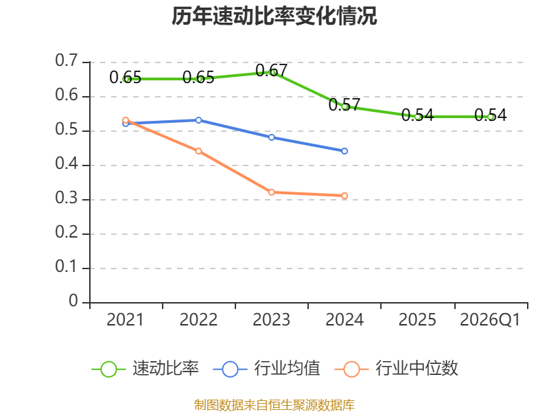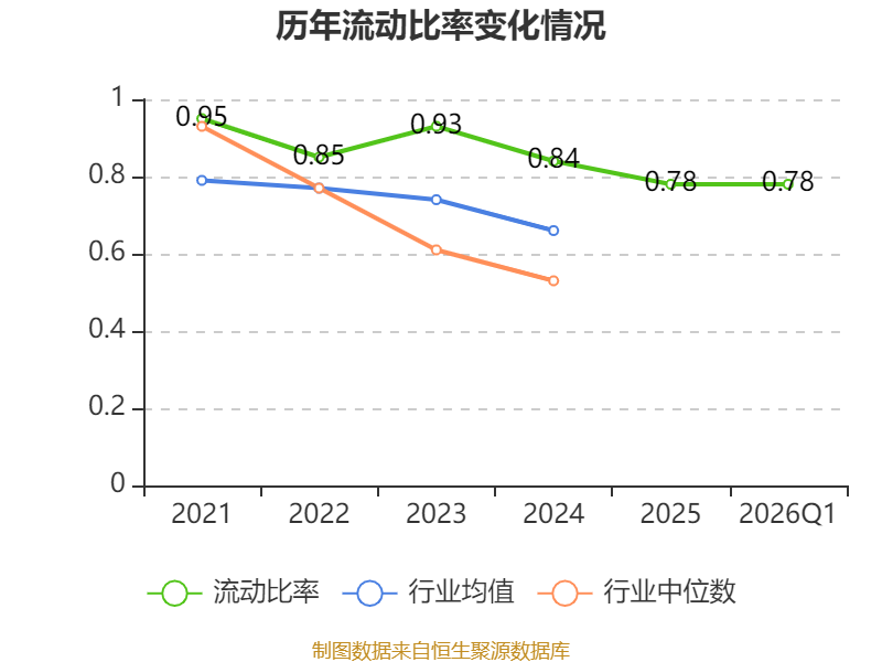 2026年第一季度,公司流动比率为0.78,速动比率为0.54。