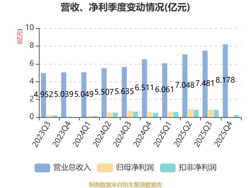 2025年全年,公司研发投入金额为2.38亿元,同比增长4.71%;研发投入占营业收入比例为8.26%,相比上年同期下降1.74个百分点。