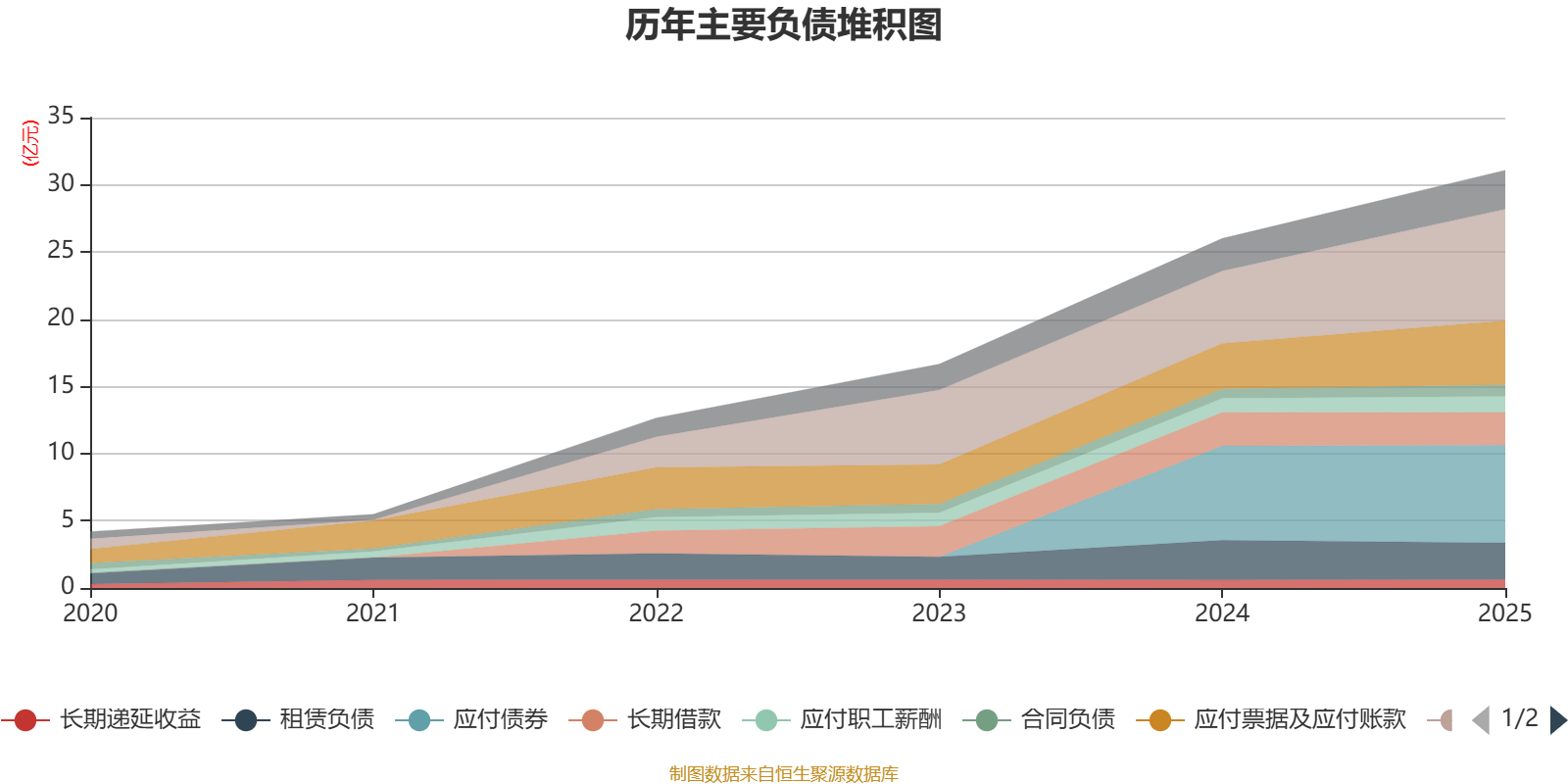 负债重大变化方面,截至2025年末,公司短期借款较上年末增加53.84%,占公司总资产比重上升3.39个百分点;应付票据及应付账款较上年末增加41.21%,占公司总资产比重上升1.44个百分点;应付债券较上年末增加3.53%,占公司总资产比重下降1.21个百分点;租赁负债较上年末减少7.37%,占公司总资产比重下降1.02个百分点。
