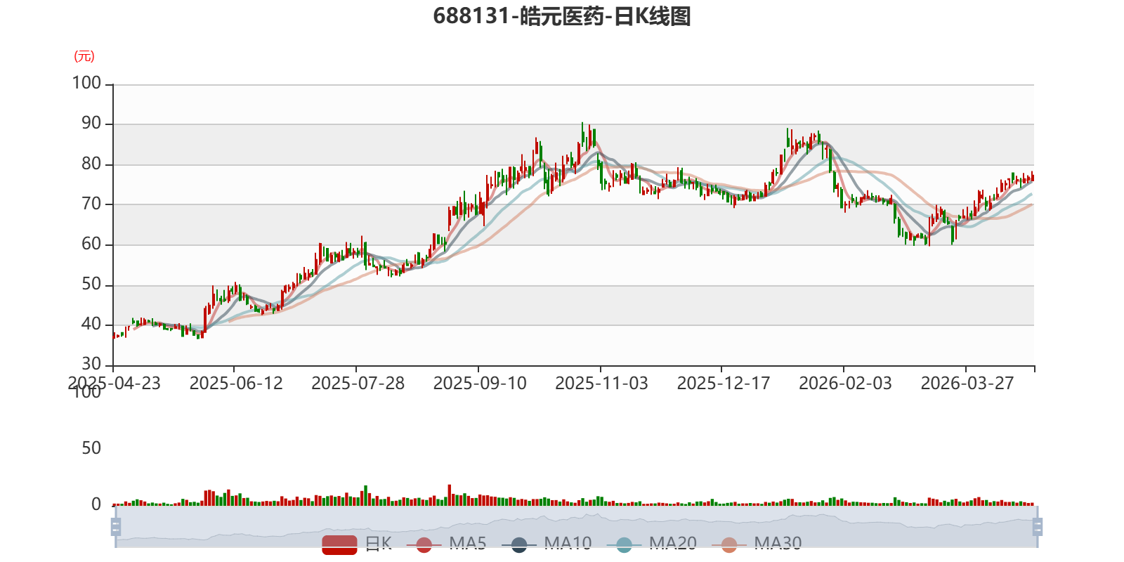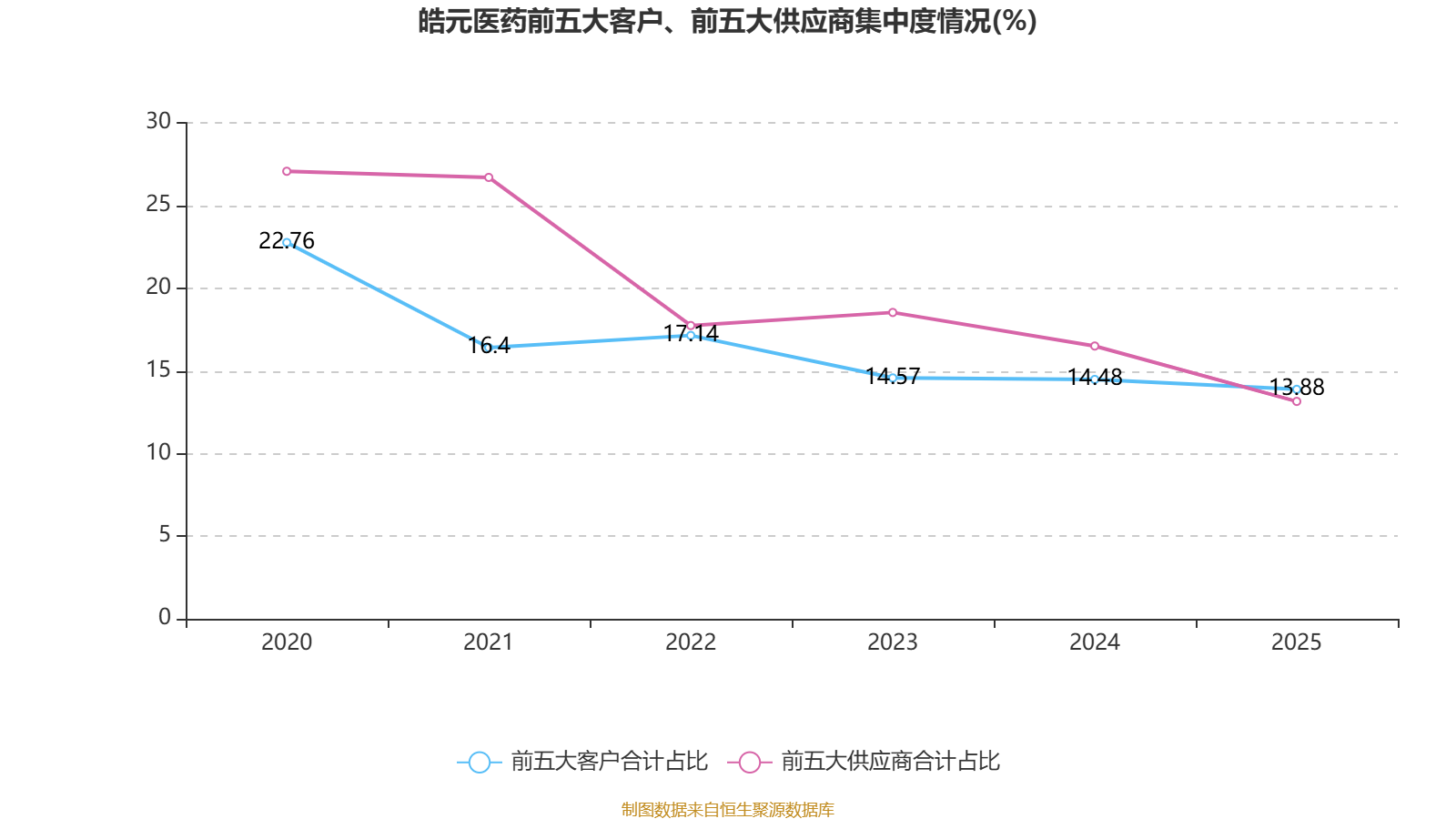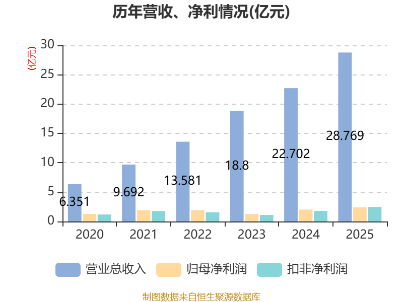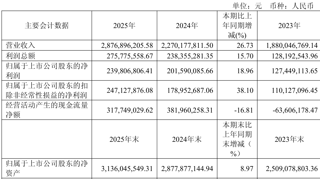 中证智能财讯皓元医药(688131)4月23日披露2025年年度报告。2025年,公司实现营业总收入28.77亿元,同比增长26.73%;归母净利润2.4亿元,同比增长18.96%;扣非净利润2.47亿元,同比增长38.10%;经营活动产生的现金流量净额为3.18亿元,同比下降16.81%;报告期内,皓元医药基本每股收益为1.13元,加权平均净资产收益率为8.00%。公司2025年度分配预案为:拟向全体股东每10股派现1.5元(含税)。