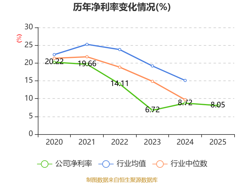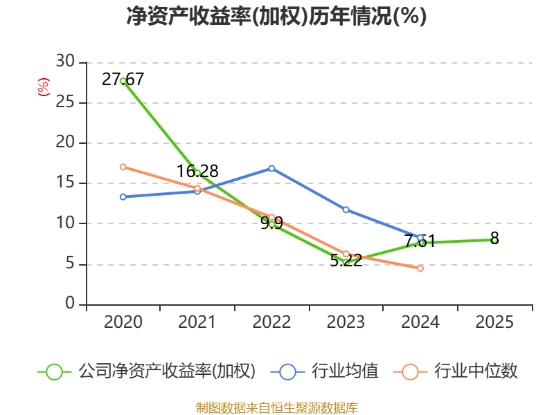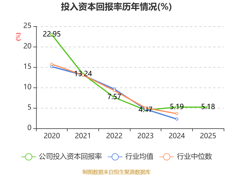 数据显示,2025年公司加权平均净资产收益率为8%,较上年同期上升0.39个百分点。公司2025年投入资本回报率为5.18%,较上年同期下降0.01个百分点。