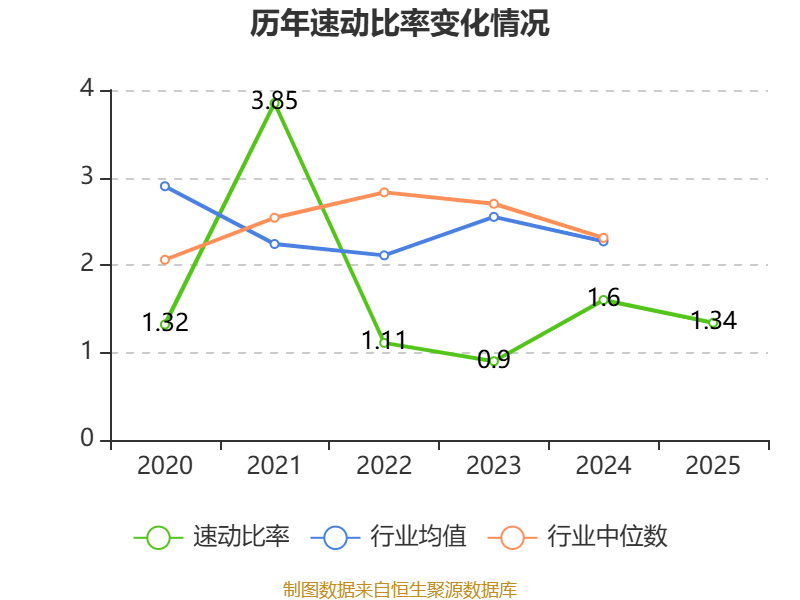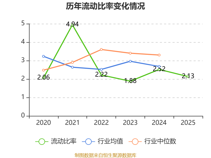 2025年,公司流动比率为2.13,速动比率为1.34。