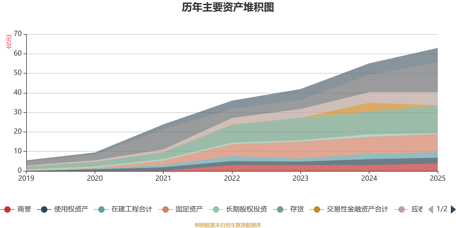 资产重大变化方面,截至2025年末,公司货币资金较上年末增加74.11%,占公司总资产比重上升8.35个百分点;交易性金融资产合计较上年末减少95.53%,占公司总资产比重下降7.84个百分点;长期股权投资较上年末减少62.62%,占公司总资产比重下降1.55个百分点;存货较上年末增加20.94%,占公司总资产比重上升1.22个百分点。