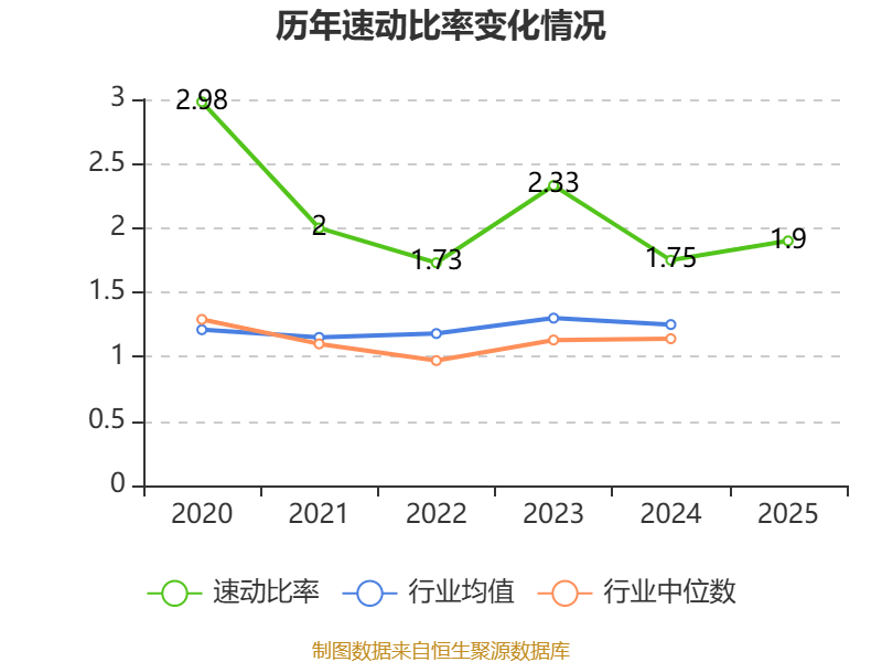 2025年,公司流动比率为2.25,速动比率为1.9。