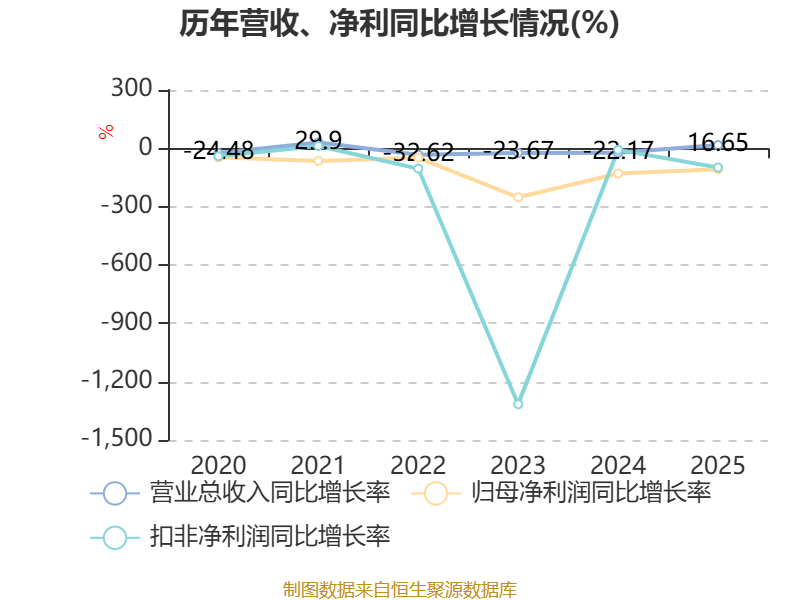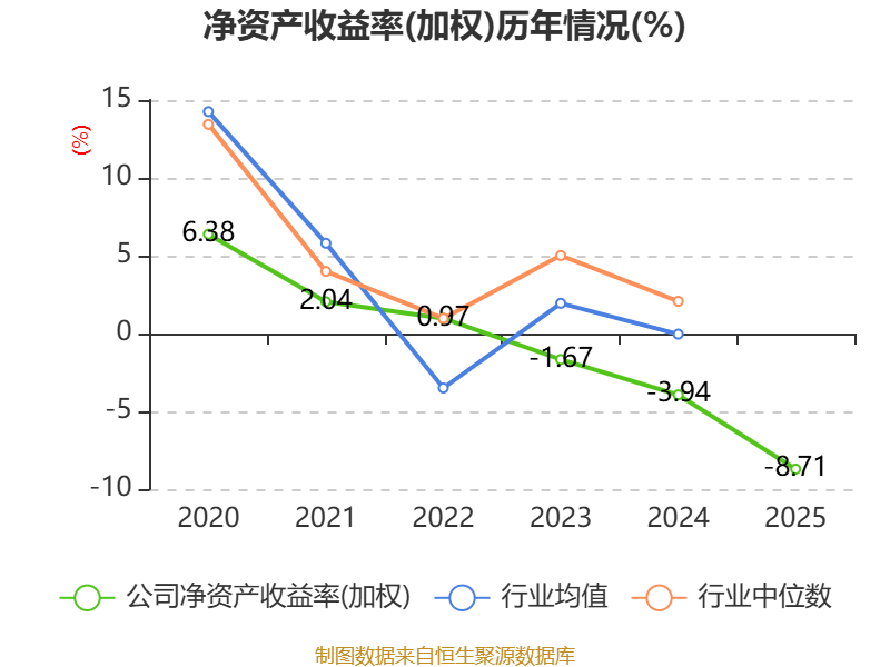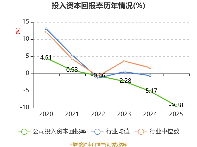数据显示,2025年公司加权平均净资产收益率为-8.71%,较上年同期下降4.77个百分点。公司2025年投入资本回报率为-9.38%,较上年同期下降4.21个百分点。