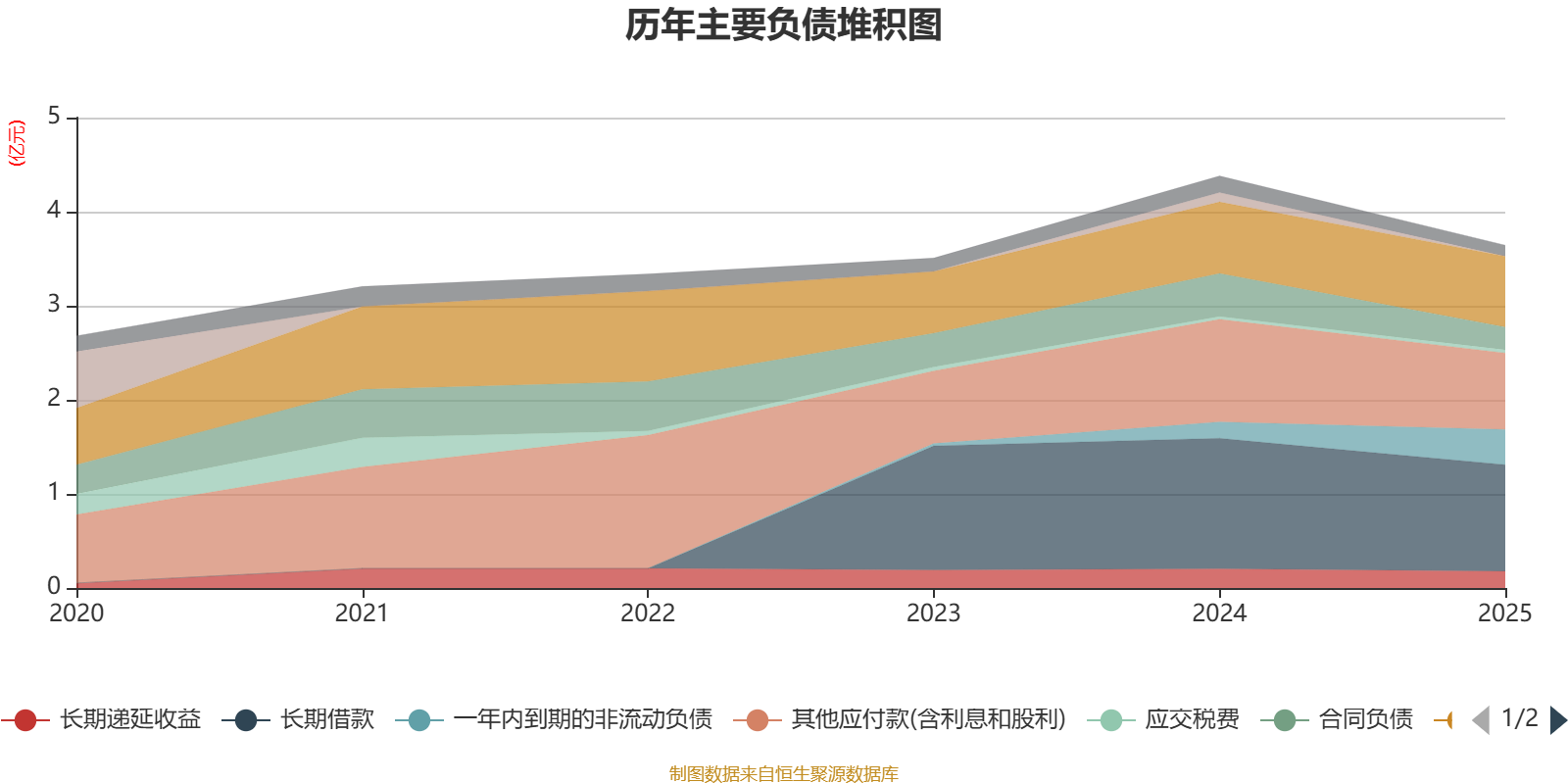负债重大变化方面,截至2025年末,公司一年内到期的非流动负债较上年末增加114.79%,占公司总资产比重上升1.7个百分点;合同负债较上年末减少46.58%,占公司总资产比重下降1.27个百分点;其他应付款(含利息和股利)较上年末减少25.36%,占公司总资产比重下降1.25个百分点;长期借款较上年末减少18.46%,占公司总资产比重下降0.85个百分点。