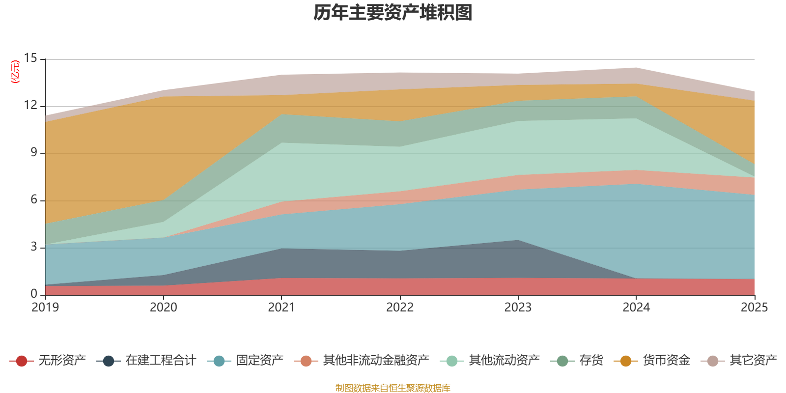 资产重大变化方面,截至2025年末,公司货币资金较上年末增加397.49%,占公司总资产比重上升25.61个百分点;其他流动资产较上年末减少98.11%,占公司总资产比重下降22.22个百分点;存货较上年末减少43.12%,占公司总资产比重下降3.53个百分点;其他非流动金融资产较上年末增加23.95%,占公司总资产比重上升2.36个百分点。