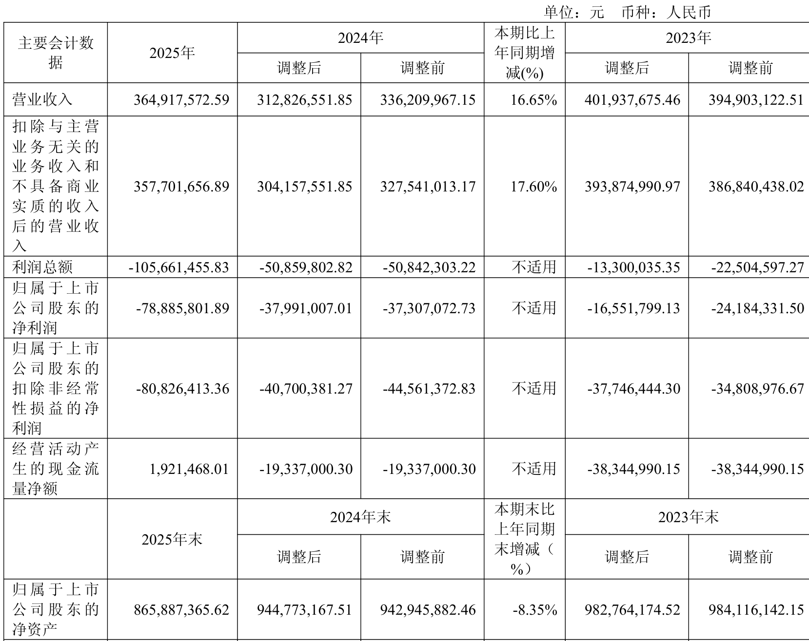 中证智能财讯菲林格尔(603226)4月23日披露2025年年度报告。2025年,公司实现营业总收入3.65亿元,同比增长16.65%;归母净利润亏损7888.58万元,上年同期亏损3799.1万元;扣非净利润亏损8082.64万元,上年同期亏损4070.04万元;经营活动产生的现金流量净额为192.15万元,上年同期为-1933.7万元;报告期内,菲林格尔基本每股收益为-0.22元,加权平均净资产收益率为-8.71%。