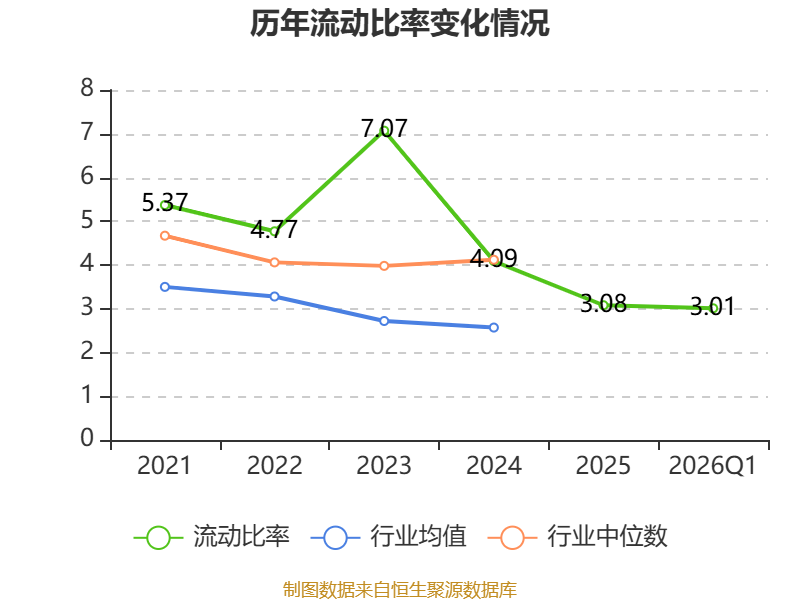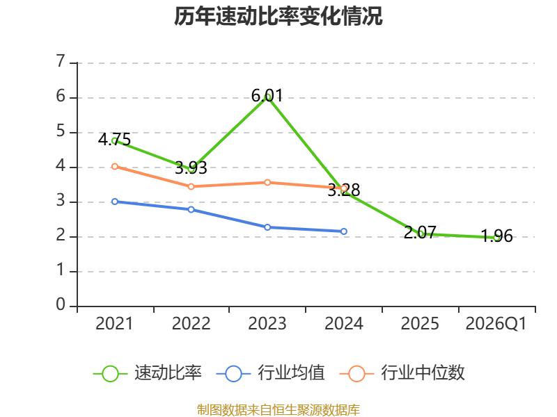 2026年第一季度,公司流动比率为3.01,速动比率为1.96。