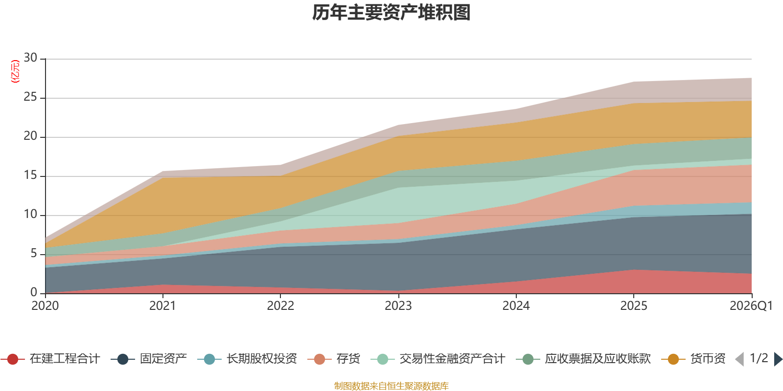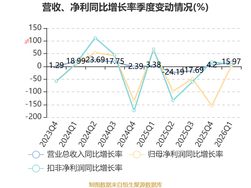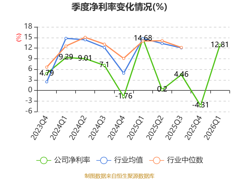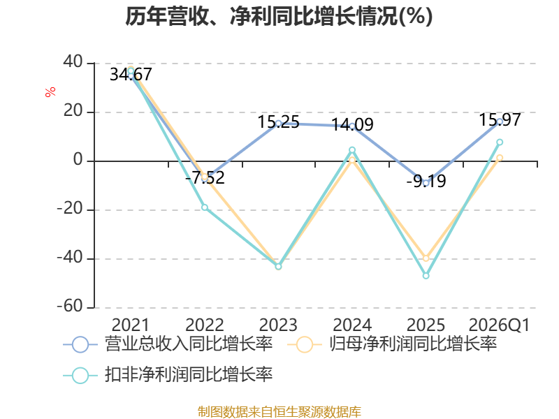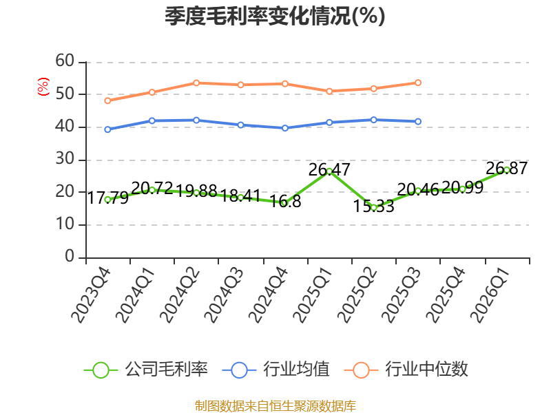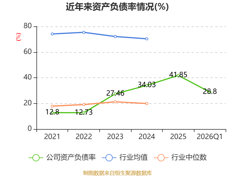 资产重大变化方面,截至2026年一季度末,公司固定资产较上年末增加14.01%,占公司总资产比重上升2.98个百分点;货币资金较上年末减少10.29%,占公司总资产比重下降2.29个百分点;在建工程合计较上年末减少17.06%,占公司总资产比重下降2.06个百分点;交易性金融资产合计较上年末增加35.93%,占公司总资产比重上升0.7个百分点。